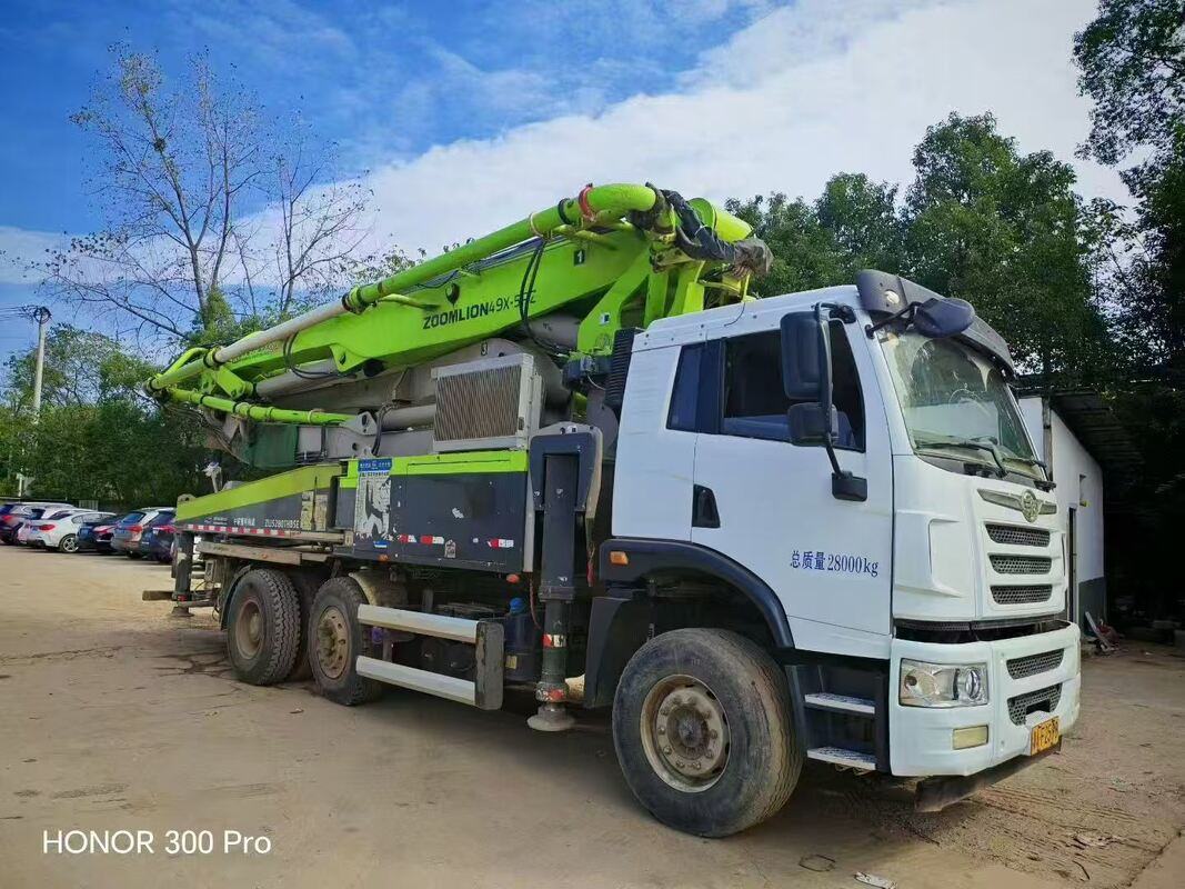 هذه المضخة الخرسانية المثبتة على شاحنة (الموديل: ZLJ5280THBJE) مصنعة من قبل شركة Zoomlion Heavy Industry Science and Technology Co., Ltd. تم إنتاجها في مارس 2021 ولها رقم تسلسلي 016396A1210010. مع طراز هيكل CA5300THBPIK2T2BE5A81 وطراز المحرك CA6DL1 - 32E5 (الحد الأقصى للقدرة الصافية: 235 كيلو واط عند 2300 دورة في الدقيقة)، فإنها توفر وصولاً رأسيًا بحد أقصى يبلغ 42.3 مترًا، ووصولاً أفقيًا يبلغ 37.65 مترًا، وإنتاجًا نظريًا للخرسانة يبلغ 100/60 متر مكعب/ساعة. يمكنها توصيل الخرسانة بضغط 8/15 ميجا باسكال، ولها كتلة إجمالية للمركبة تبلغ 28000 كجم، وكتلة فارغة تبلغ 27870 كجم، وأبعاد 10950 مم * 2550 مم * 3960 مم.